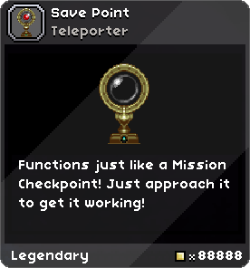 Save Points thus far are purchaseable from the Castlevania Trader for Pixels, however it is expected that this is a temporary solution; the recipe for the Save Point may be transferred to another crafting station, or removed altogether.